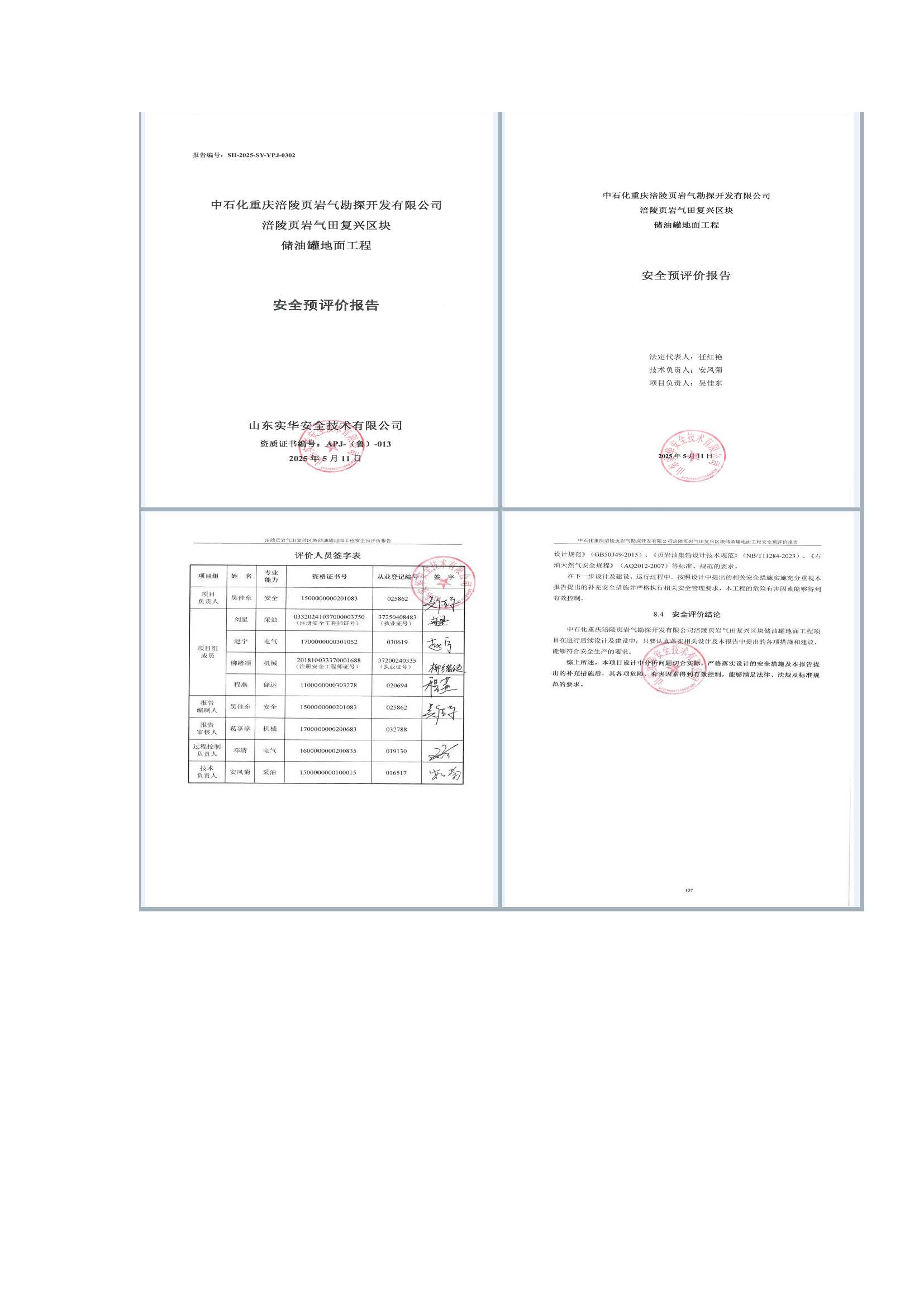 中石化重慶涪陵頁巖氣勘探開發(fā)有限公司涪陵頁巖氣田復(fù)興區(qū)塊儲(chǔ)油罐地面工程安全預(yù)評(píng)價(jià)